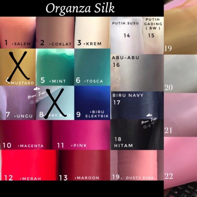 Dijual KAIN ORGANZA PREMIUM KATALOG LEBAR 150cm - harga per 0,5 meter termasuk dalam kategori Produk Lainnya dan memiliki rating 0 di marketplace Tokopedia .
